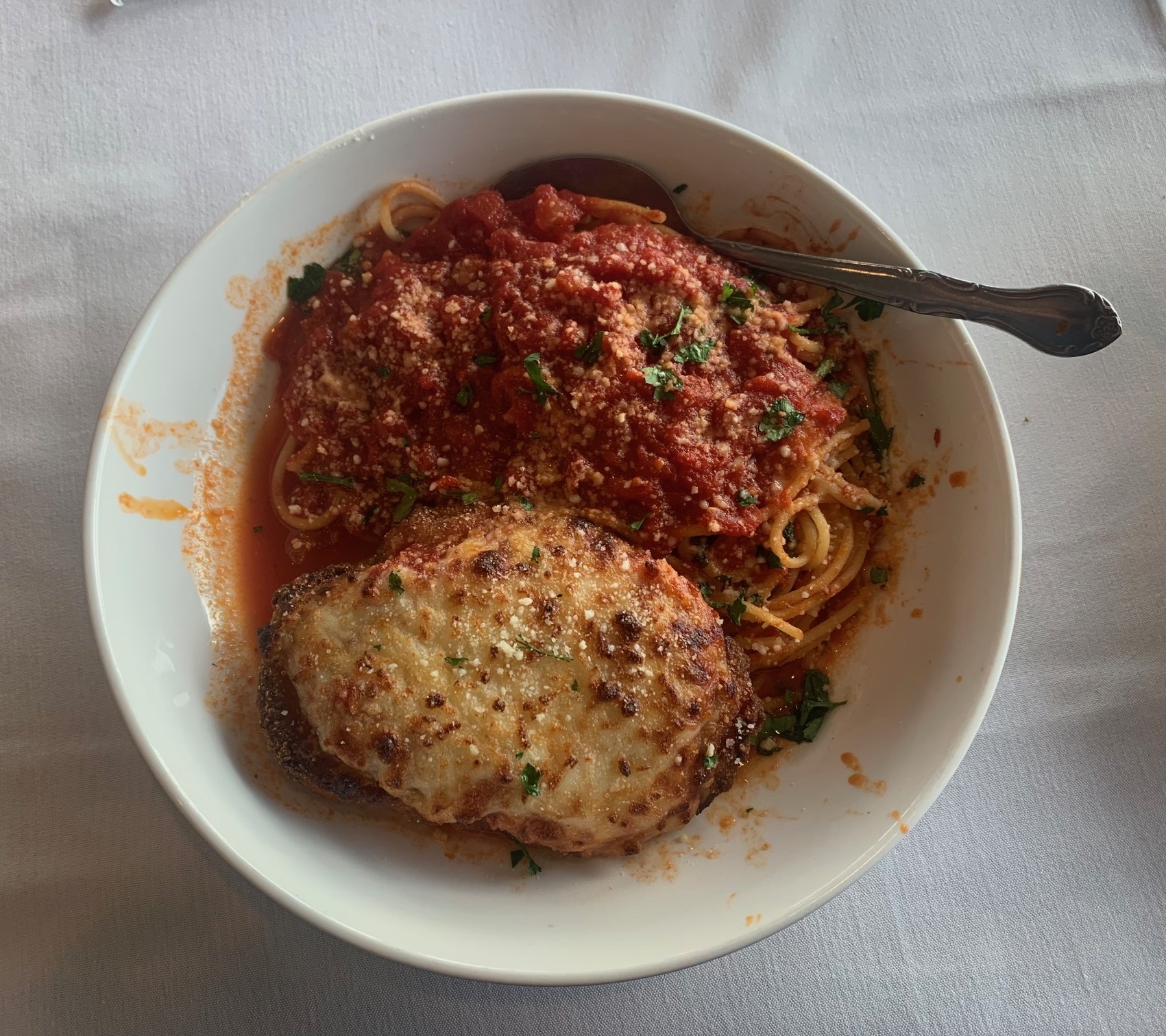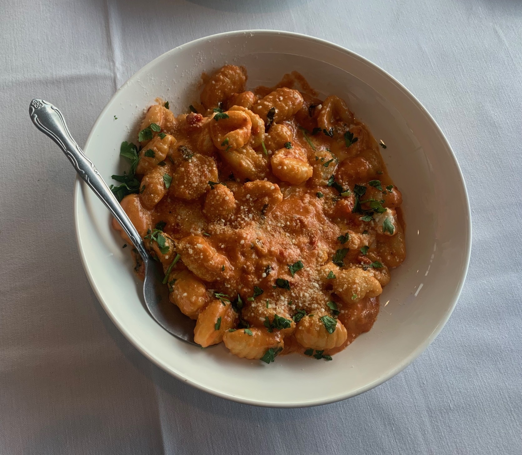 We shared chicken parmesan served with spaghetti ($21) and as recommended by our waitress as her favorite, the gnocchi with blush sauce ($23) and added a homemade meatball. Nice solid food especially for the portions and price.
