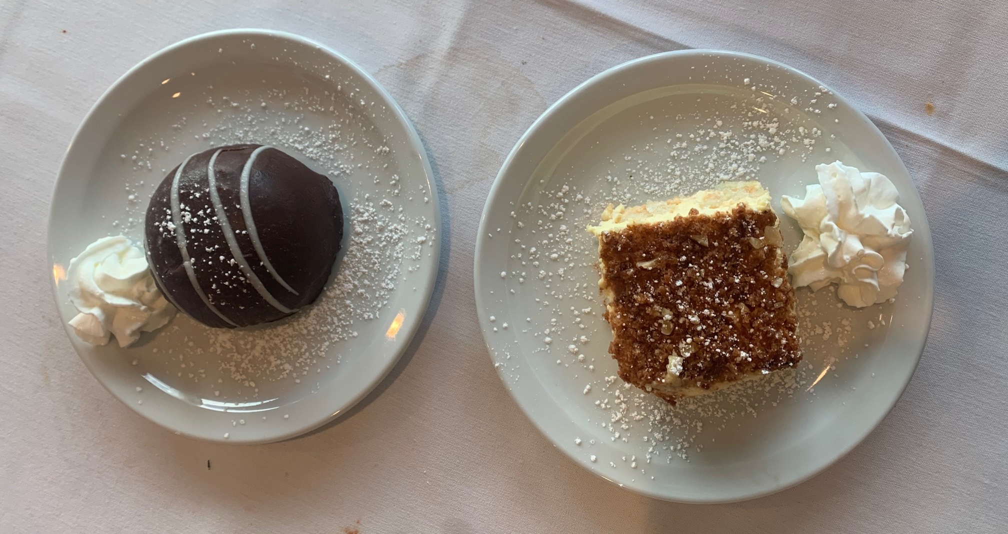 The chocolate bomb was a cute mound of chocolate ganache filled with chocolate cake and chocolate mousse. Very nice. The star of the show was the almond torte, very similar to the dessert we loved for many years at the deceased Mallorca on the South Side. No Spanish coffee though. We will be back to try their noteworthy Reuben and another slice of almond torte!