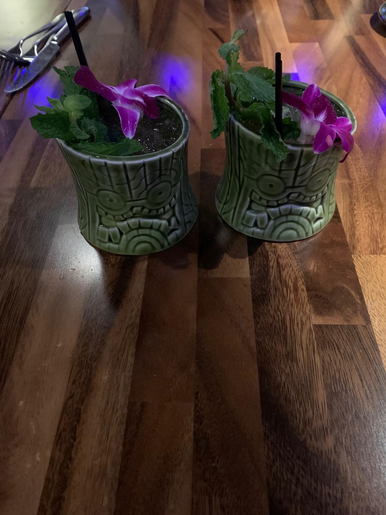 It was Happy Hour so we both ordered a Mai Tai served in a tiki style glass, garnished with fresh orchids and mint. ($10)