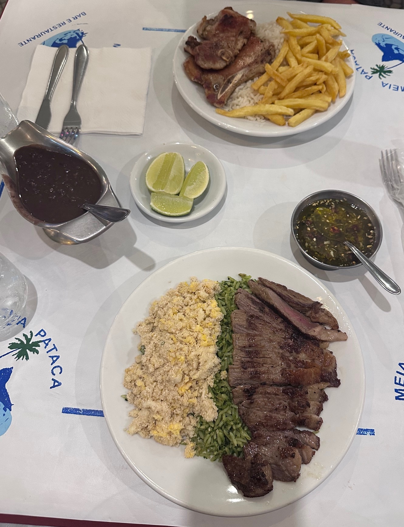 Rachael ordered a steak, while I opted for grilled pork, served with a generous spread of sides: fries, rice, black beans, and a spicy sauce for a kick of heat. The food was average, but the service was warm and welcoming. Fun fact: in Brazil, French fries seem to come with everything!